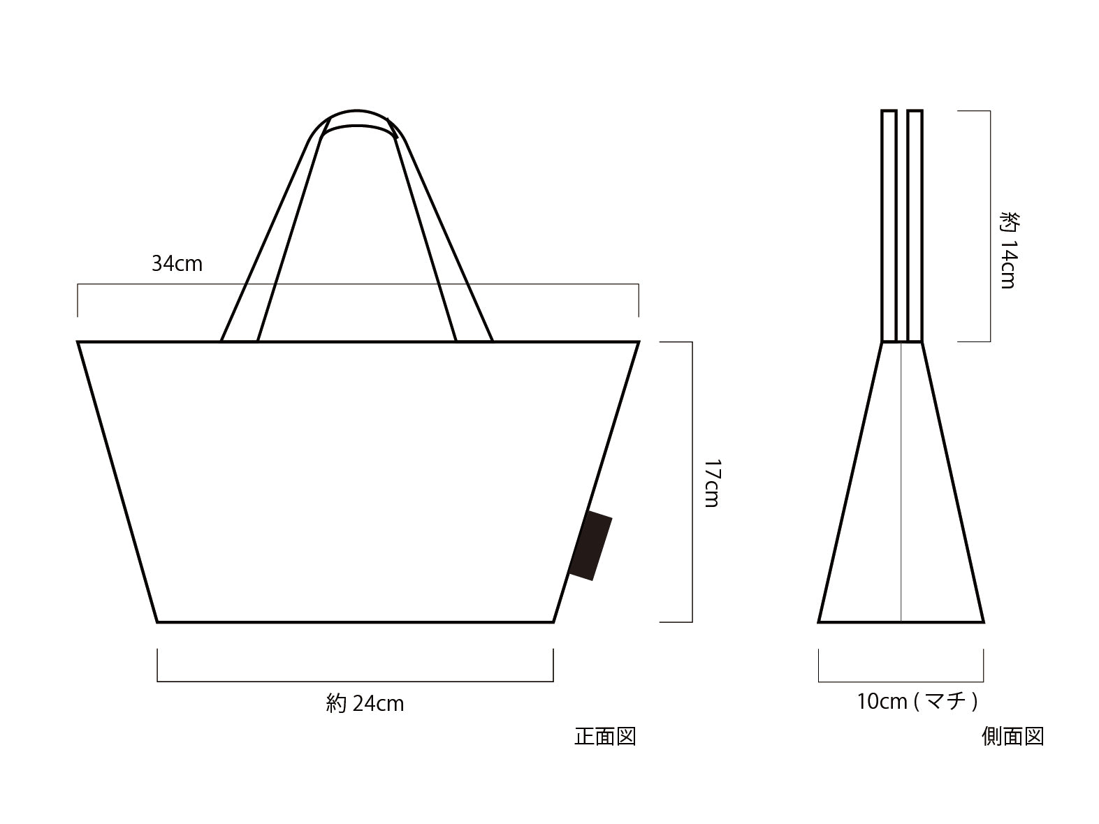 サイズ:W34cm×H17cm マチ10cm / 内ポケットあり